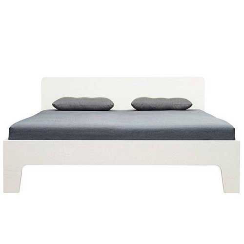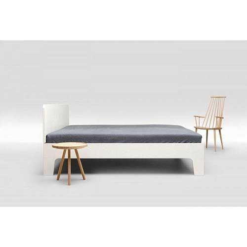 The Pure bed with headboard 160x200 by Loof is made of 30mm thick mdf. Because the flat sides of the MDF are provided with a layer of ash veneer, the bed gets a beautiful wood structure. This version of the Pure bed is lacquered and has a white color. The bed has a length of 200 centimeters and a width of 160 centimeters. The mattress and slat base are not included.