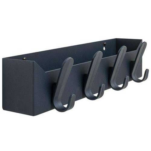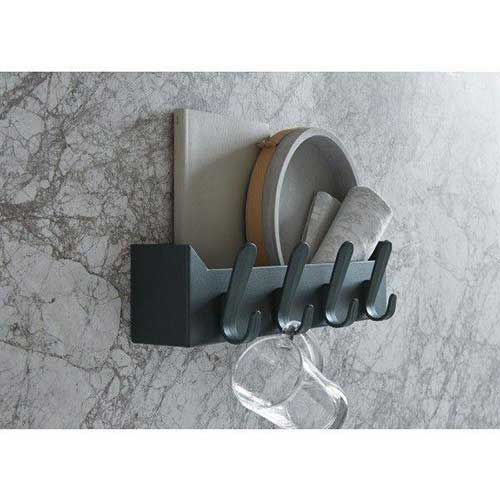 The Krok Box coat rack by Van Esch has four hooks on which you can hang coats. The coat rack is 50 centimeters wide, 12.5 centimeters high and 14.5 centimeters deep. The storage box is made of steel, and the hooks are made of plastic. The coat rack is available in different colors. With the two supplied screws you can attach the coat rack to wood, concrete or even stone.