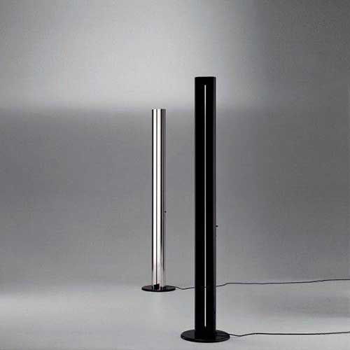 De Megaron Terra vloerlamp LED van Artemide heeft een diameter 35 centimeter en een hoogte van 182 centimeter. De lamp is leverbaar in twee kleuren: zwart en glossy aluminium.