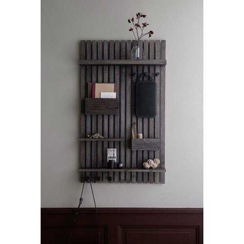 De Houten organiser wandplank van Ferm Living is 99,7 centimeter lang, 59 centimeter breed en 12,5 centimeter diep. Hij is gemaakt van zwart gebeitst essenhout. Neem de Houten organiser wandplank af met een vochtige doek.