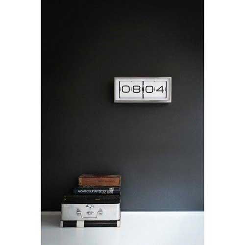 De Brick RVS 24h klok lijkt er altijd al te zijn geweest. Hij heeft de vintage uitstraling van klokken uit vervlogen tijden. Het is een flip-over model dat iedere minuut in beeld wil brengen. Je kunt de klok neerzetten of aan de wand hangen. De Brick RVS