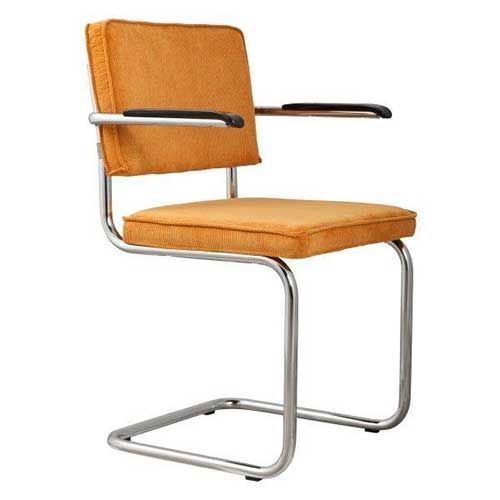 De Ridge serie van Zuiver heeft zoveel verschillende opties dat je je stoel helemaal naar wens kan samenstellen. Zo zijn er eetkamerstoelen, loungestoelen en barkrukken. Bij de eetkamerstoelen kan je ook nog kiezen of je wel of geen armleuningen wilt. Vervolgens kan je kiezen uit verschillende stoffen en kleuren. Uiteindelijk lijkt het wel alsof deze stoel op bestelling gemaakt wordt. Deze variant heeft armleuningen en de stof is ribcord.